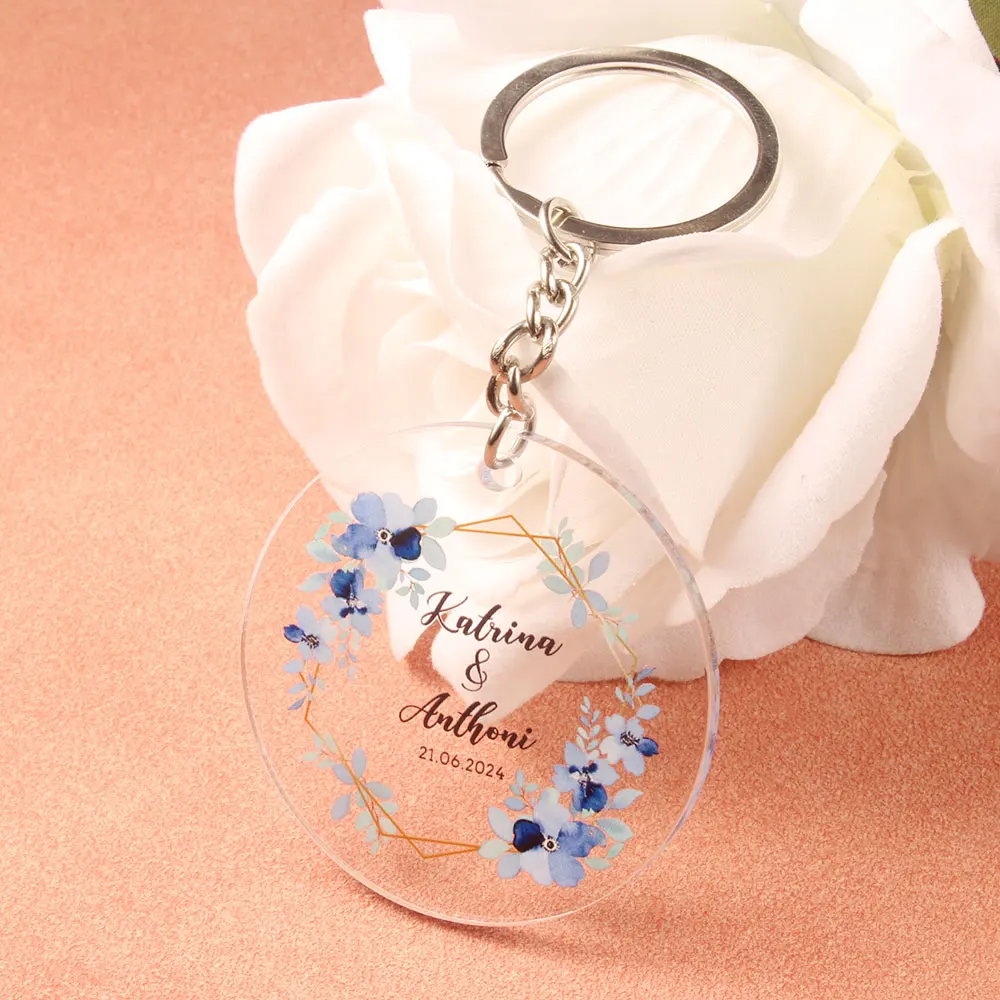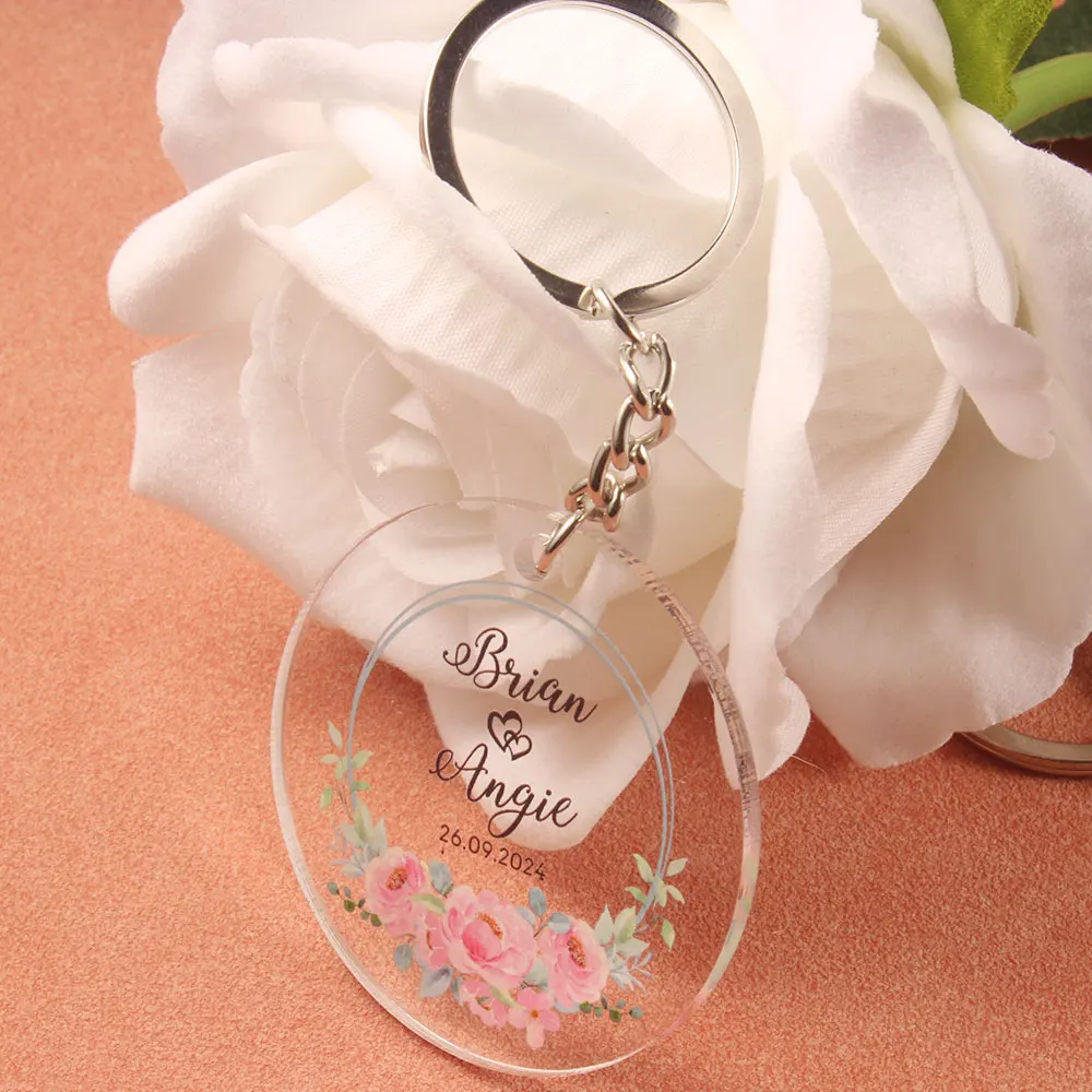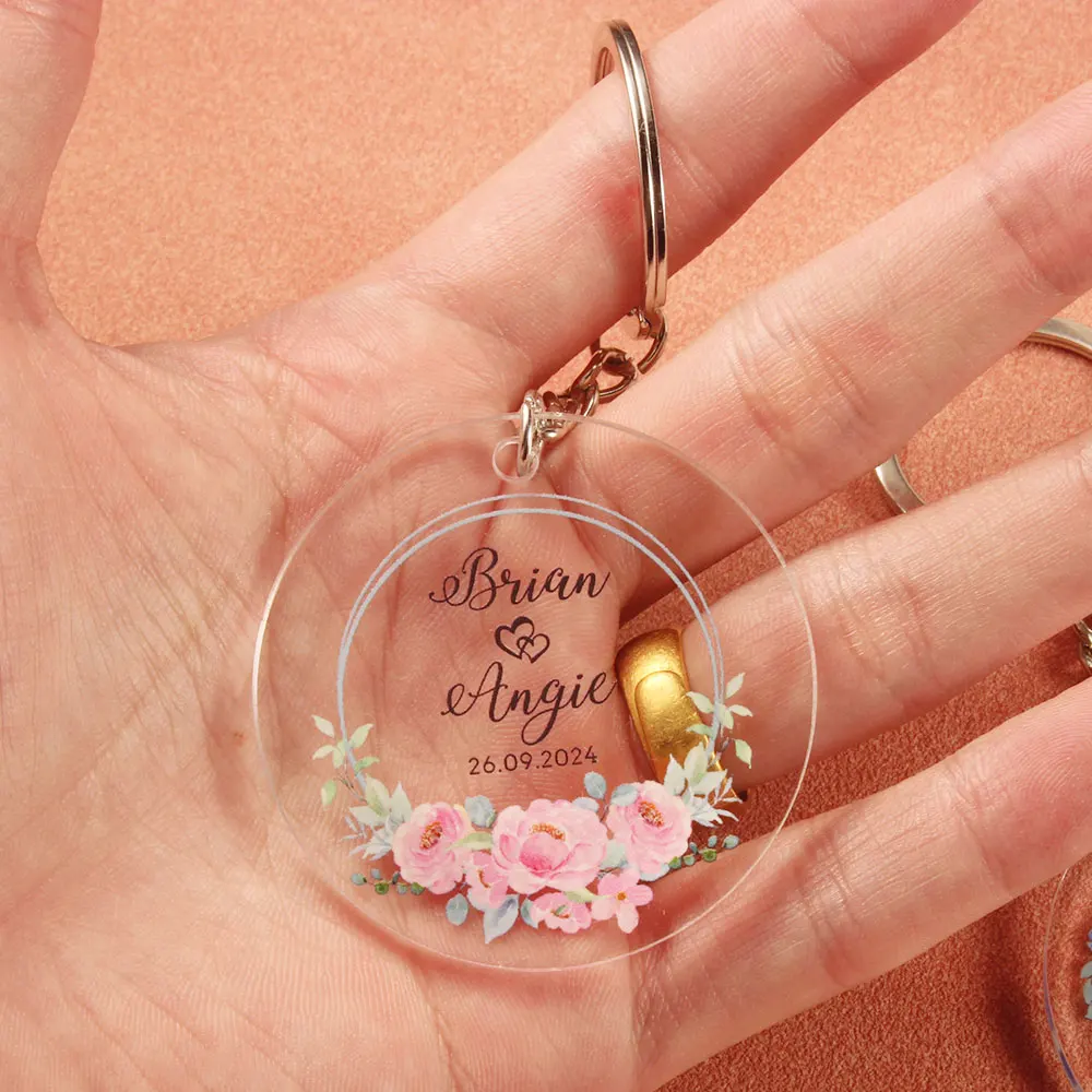 10pcs Personalized Print Name And Date Acrylic Keychain Transparent Circle Chain Acrylic Keyring Custom Wedding Gifts For Guests