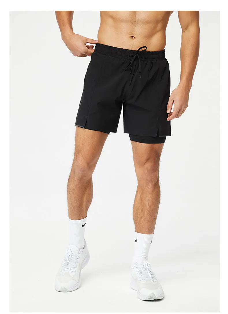 2 in 1 Men's Double Deck Beach Sweat Shorts with Pocket Running Training Short Pants Marathon Athletic Breathable Sweatpants