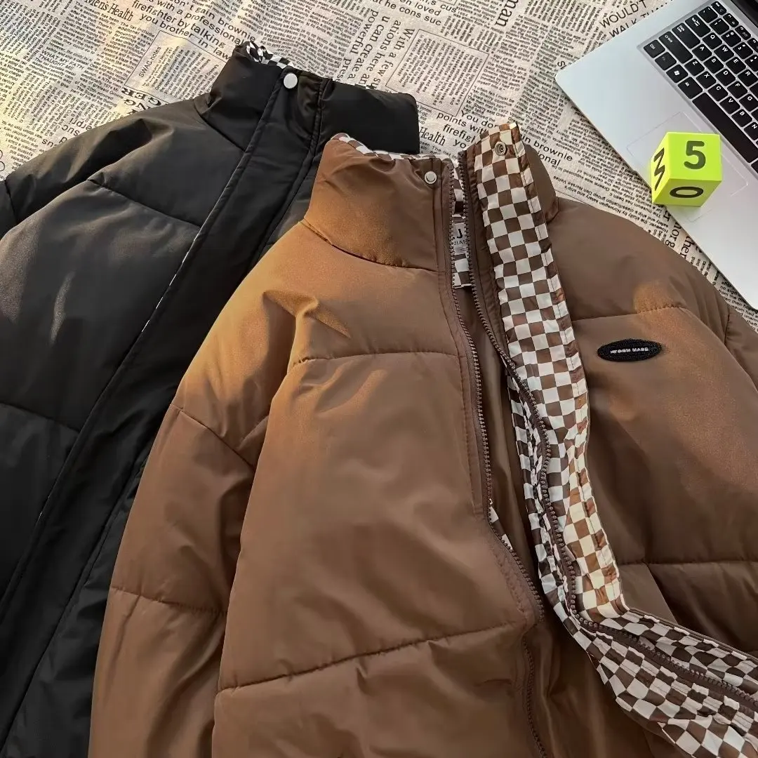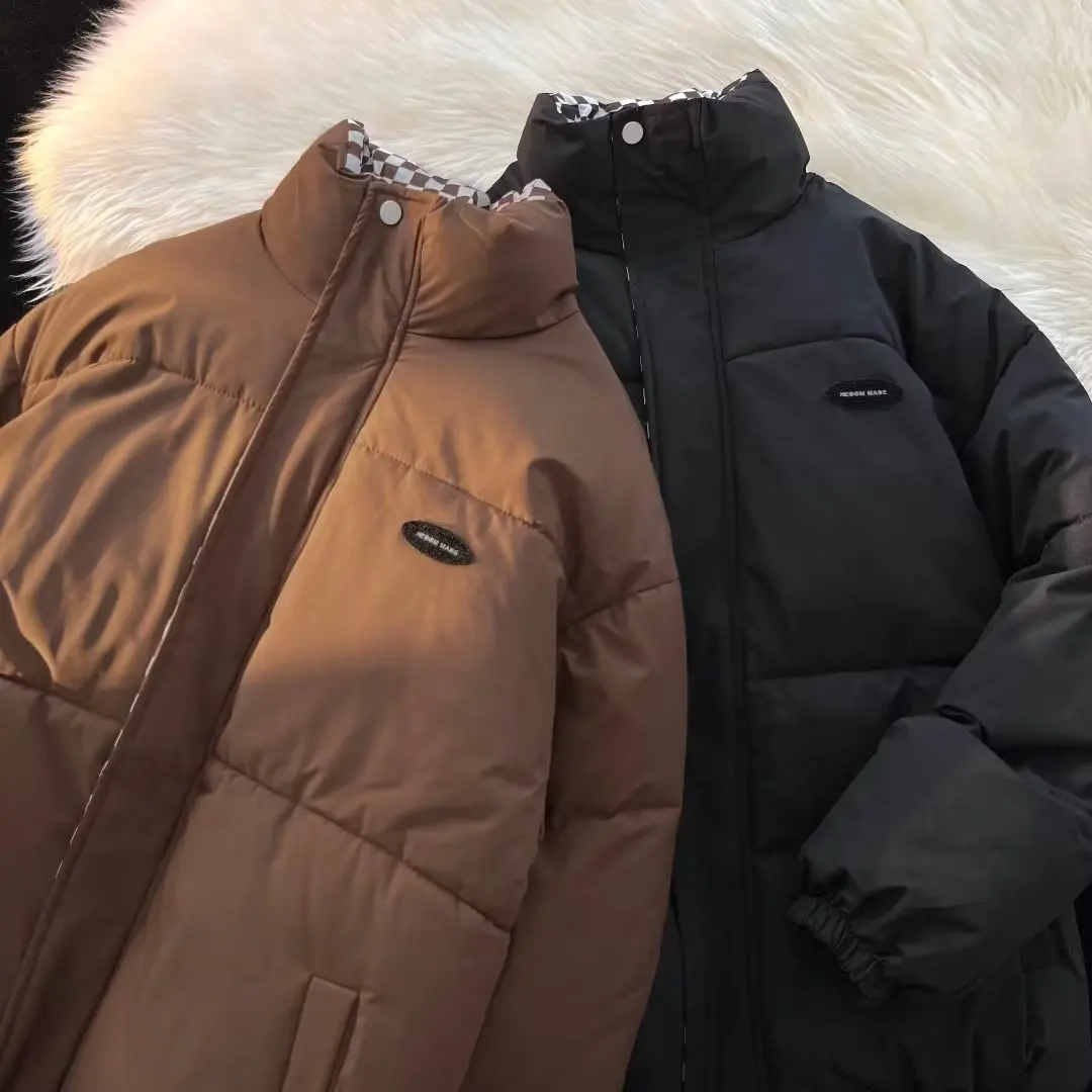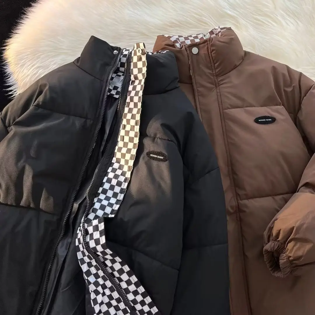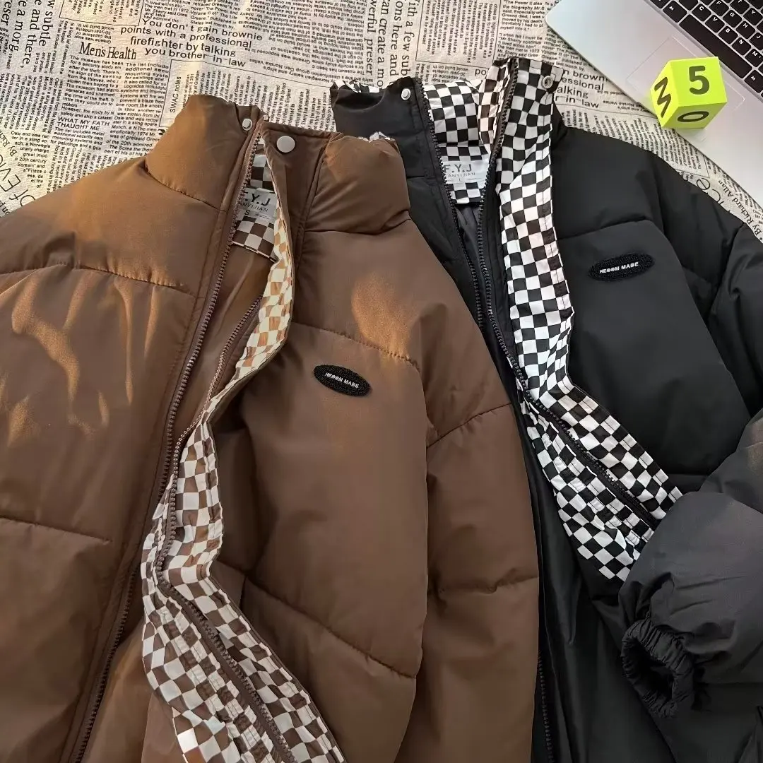 Cotton-padded Clothes Men;s Winter Loose Design Sense Niche Checkerboard Ins Tide Brand Warm Cotton-padded Jacket Coat