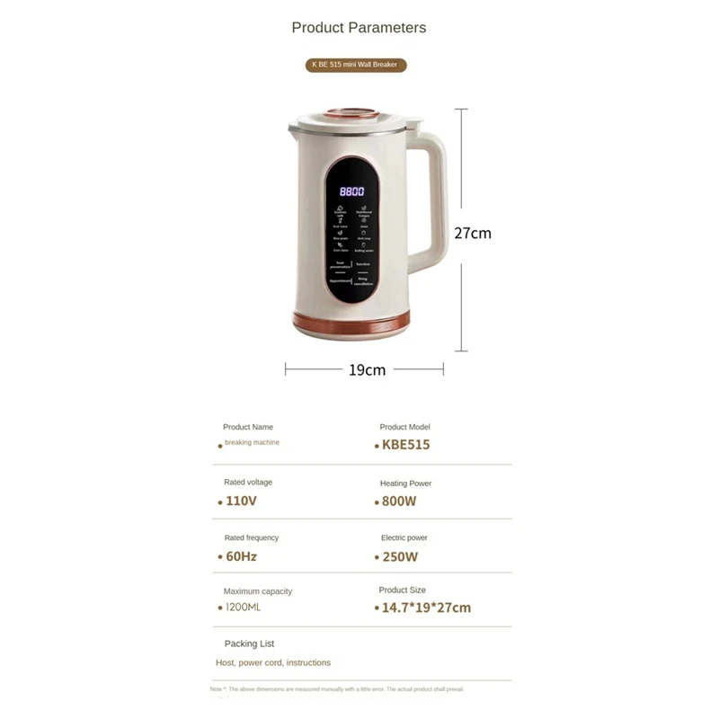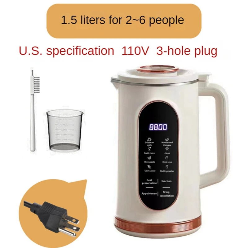 Electric Soy Milk Wall Breaking Machine 10-Leaf Blade Machine Juicer Blender Mixer Soybean Milk Maker US Plug