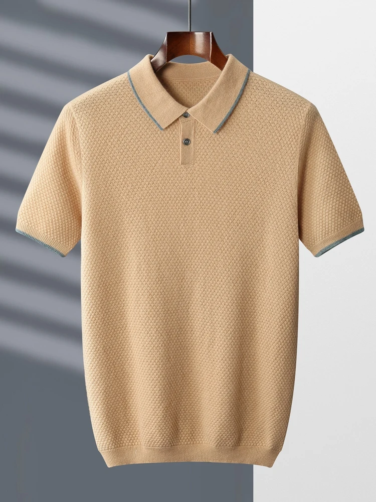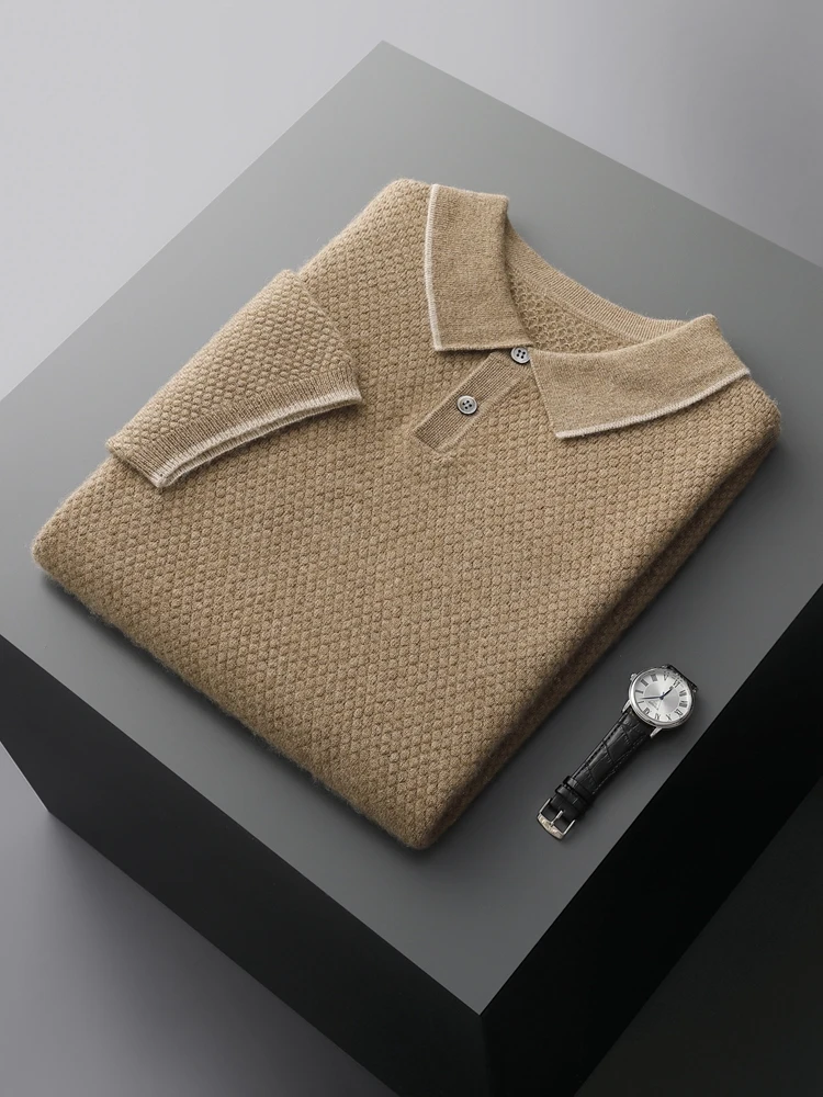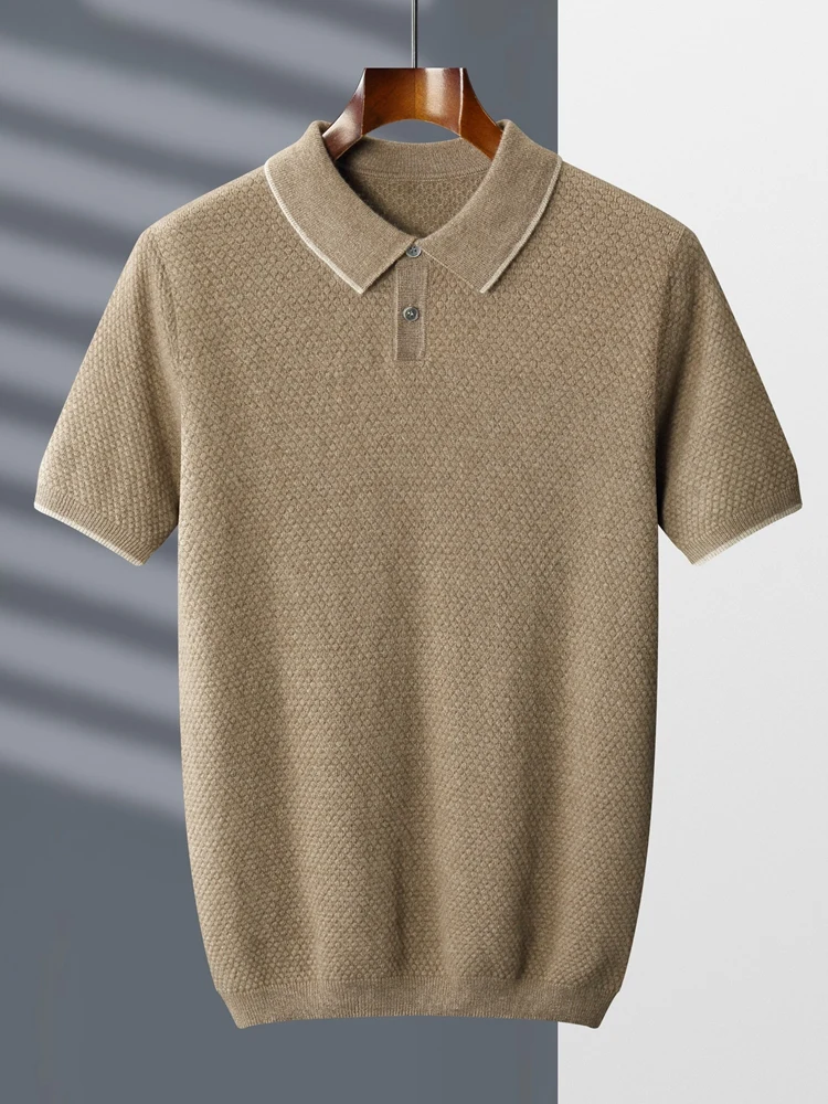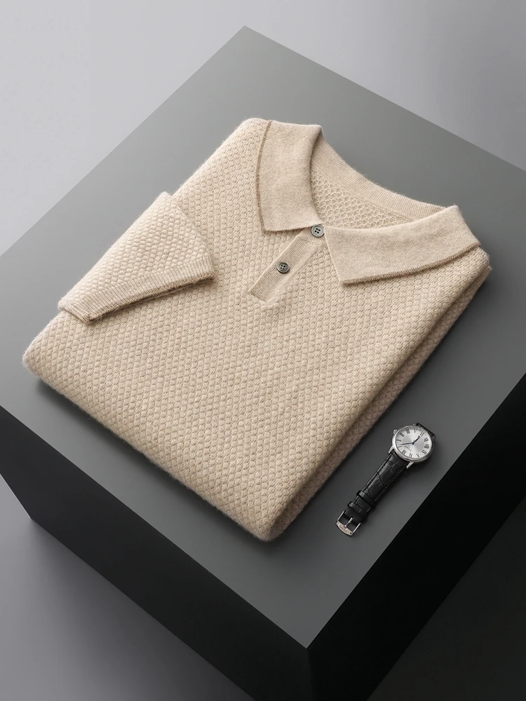 High-quality Spring Summer 100% Pure Goat Cashmere Men's Sweater POLO Neck Knit Pullovers Young Casual Tops Short Sleeve Shirt