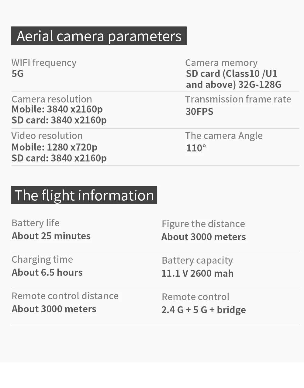 WiFi image transmission distance: 3km (outdoor accessibility, depending on conditions and mobile devices)