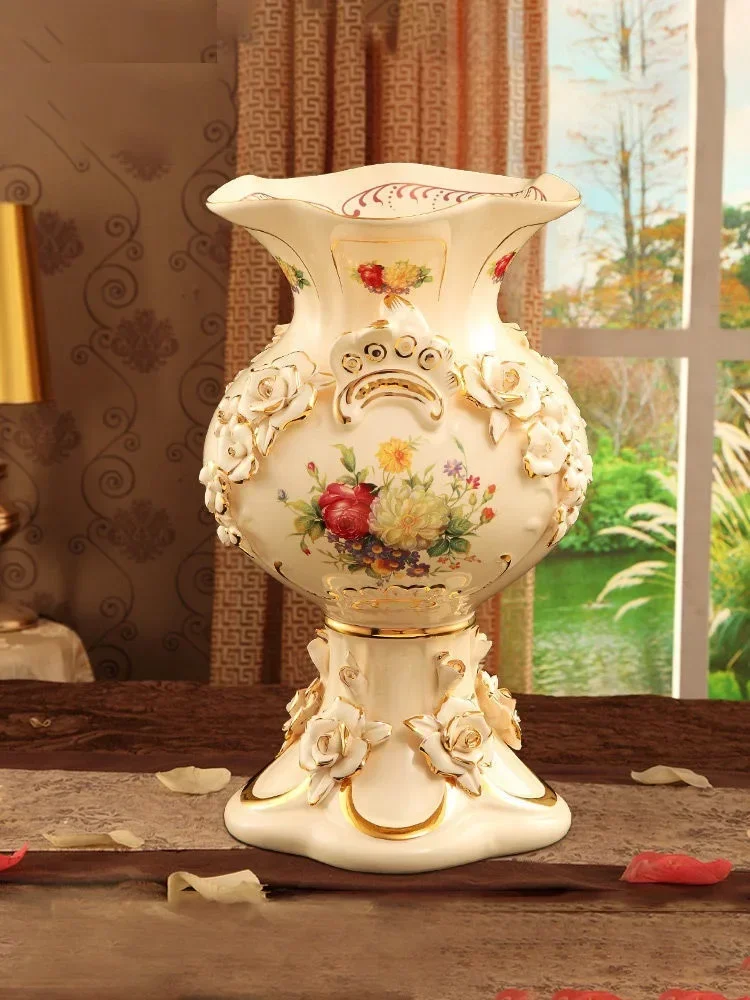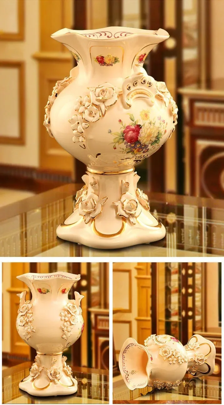 Luxury European Ceramic Vase Stereoscopic Dried Fowers Arrangement Wobble Plate Living Room Entrance Ornaments Home Decorations