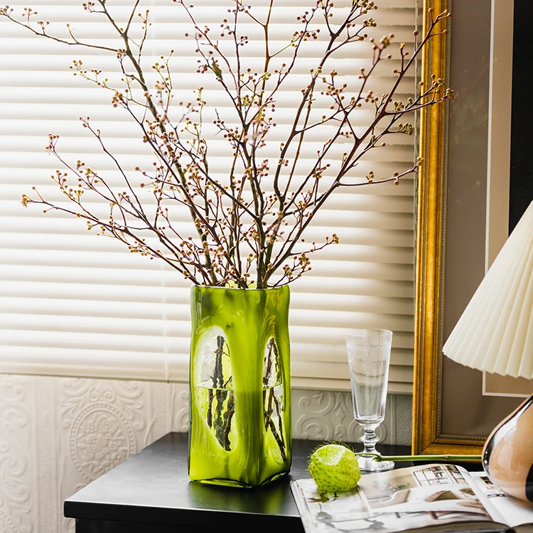 Medieval Olive Green Glass Vase Homestay Retro Living Room Desktop Flower Arrangement Decoration