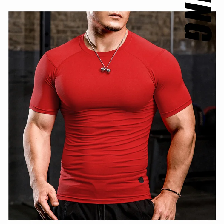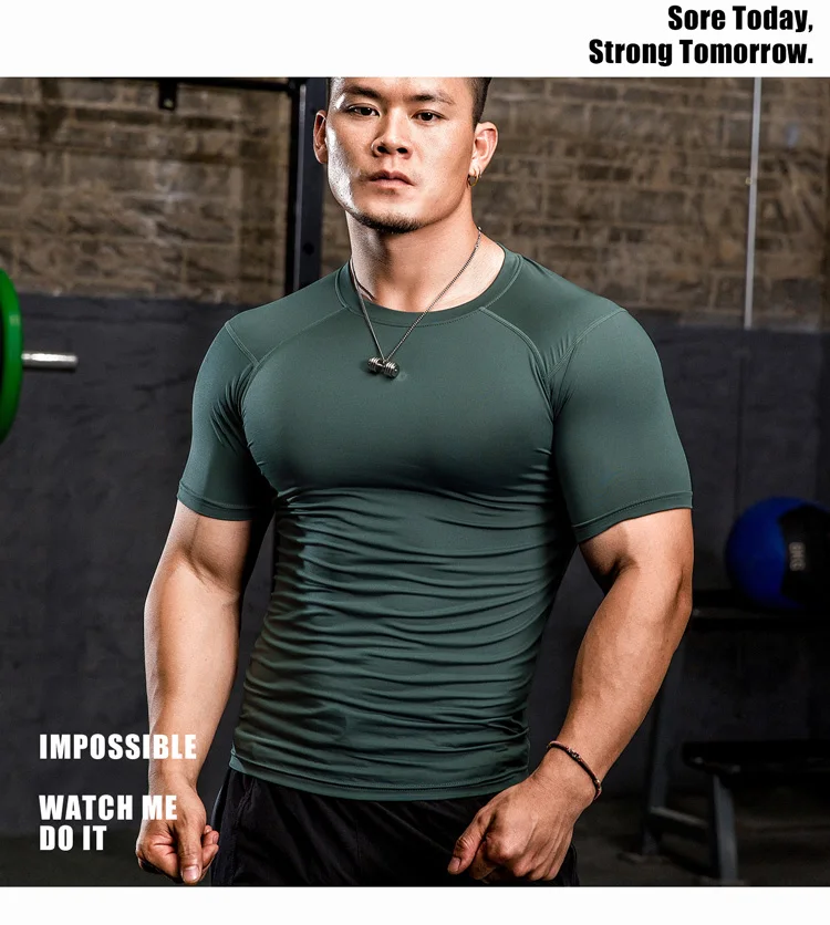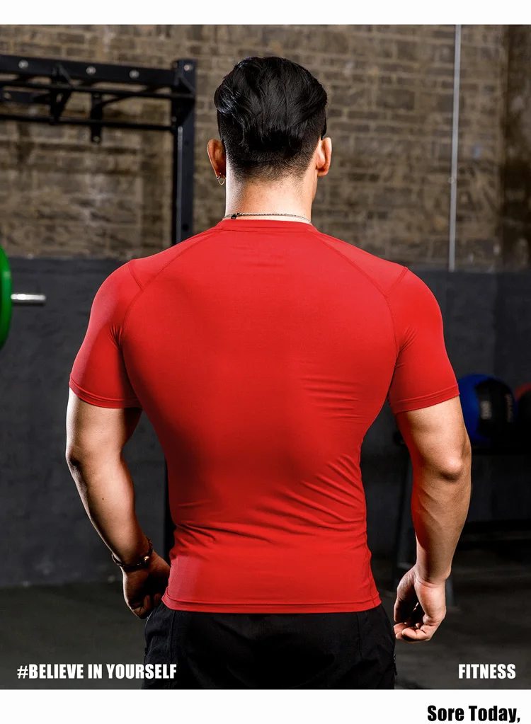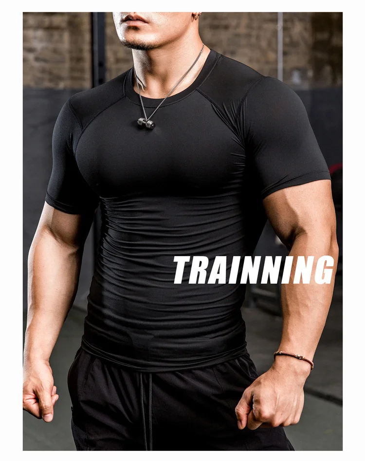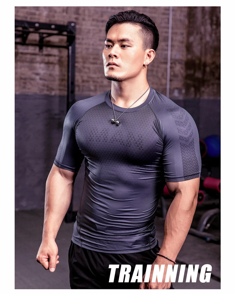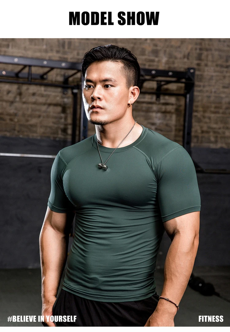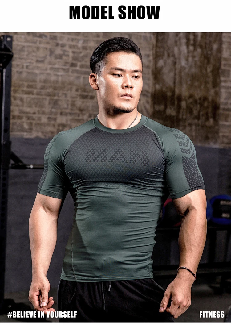 Men Tight Bodybuilding Sport T-shirt Quick Dry Running Shirt Short Sleeve Compression Top Gym Men Fitness Sweatshirt Workout