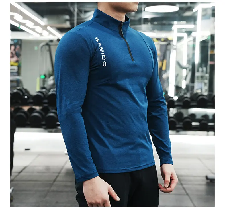 Men's Fitness Workout T-Shirt Top Half Zip Training Wear Quick Dry Running Exercise Long Sleeve Marathon Athletics Sweatshirts