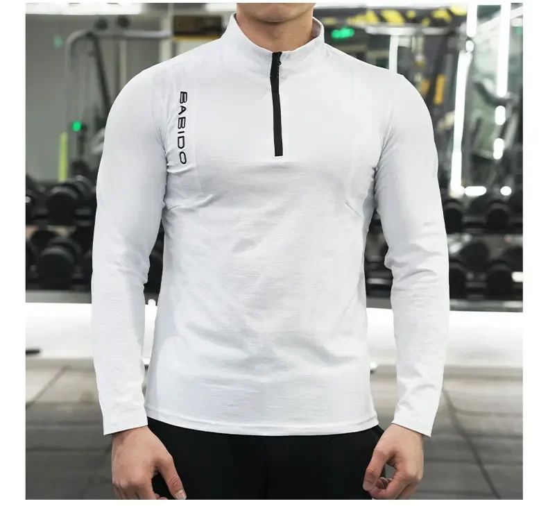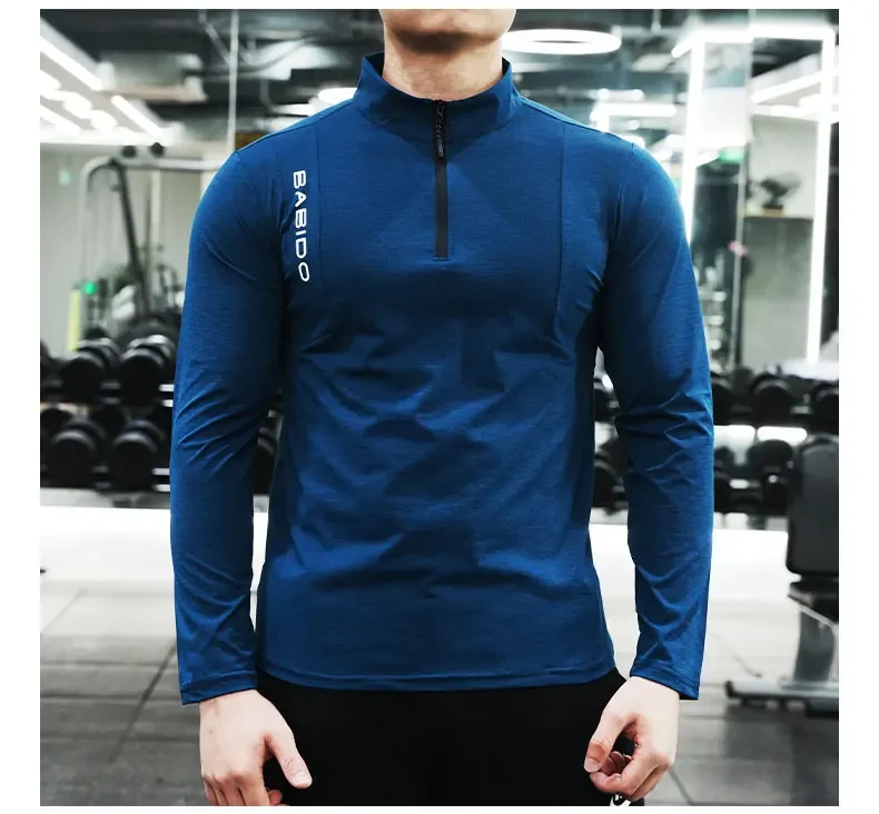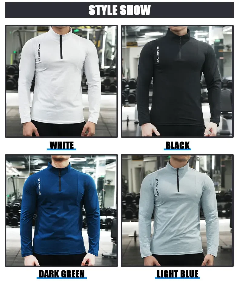 Men's Fitness Workout T-Shirt Top Half Zip Training Wear Quick Dry Running Exercise Long Sleeve Marathon Athletics Sweatshirts
