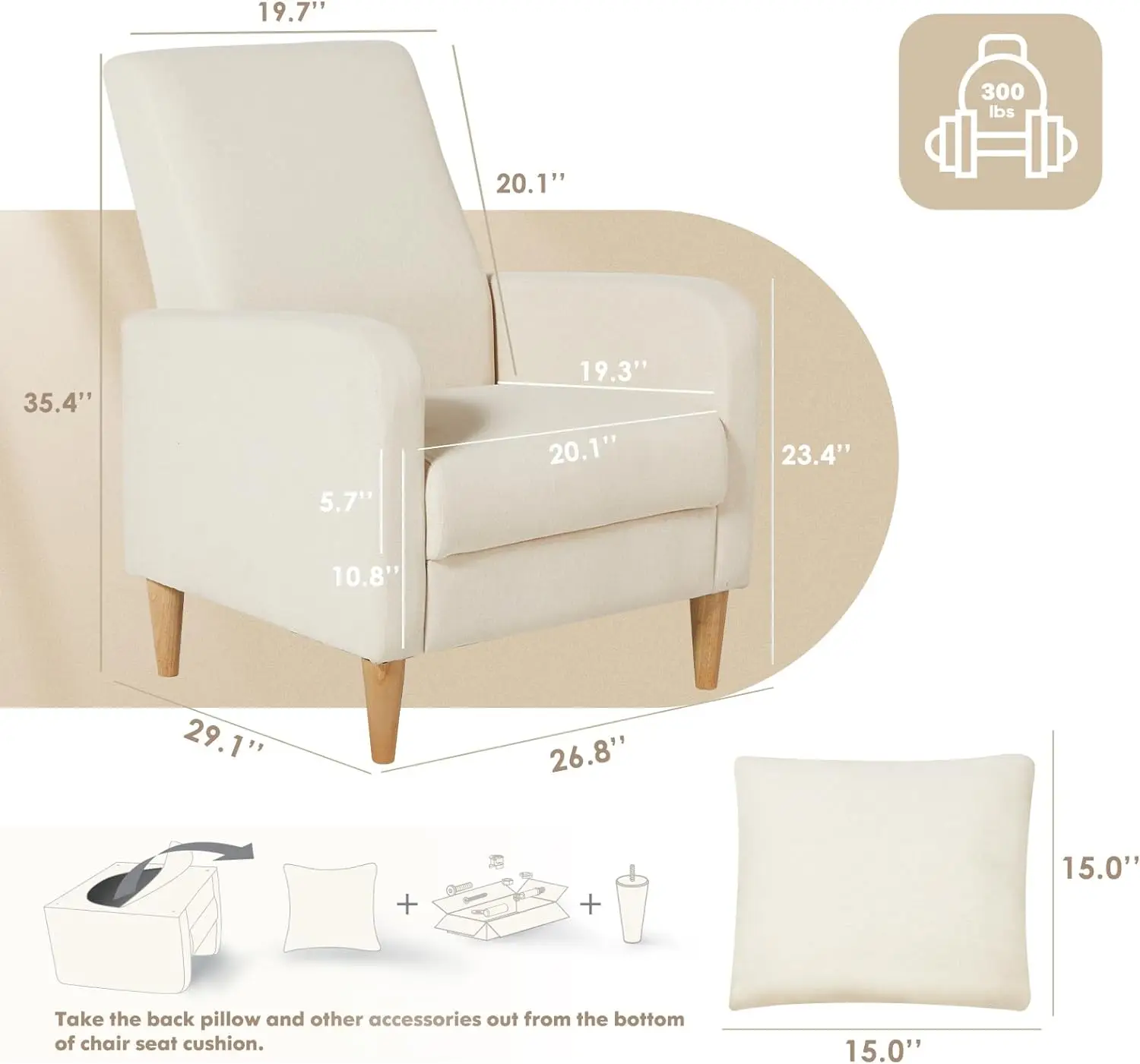 - 🍀COMFY AND SUPPORTIVE: Upholstered back and seat made from a highly resilient sponge, which is composed of multiple layers of high-density sponges, allowing you to rest and read throughout the day without sinking. Our small accent chairs can make your small room look chic and comfy.