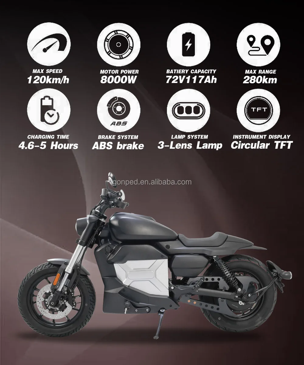 Motorcycle Powerful 8000W High Speed Off-Road Battery Lithium Motorbike Electric