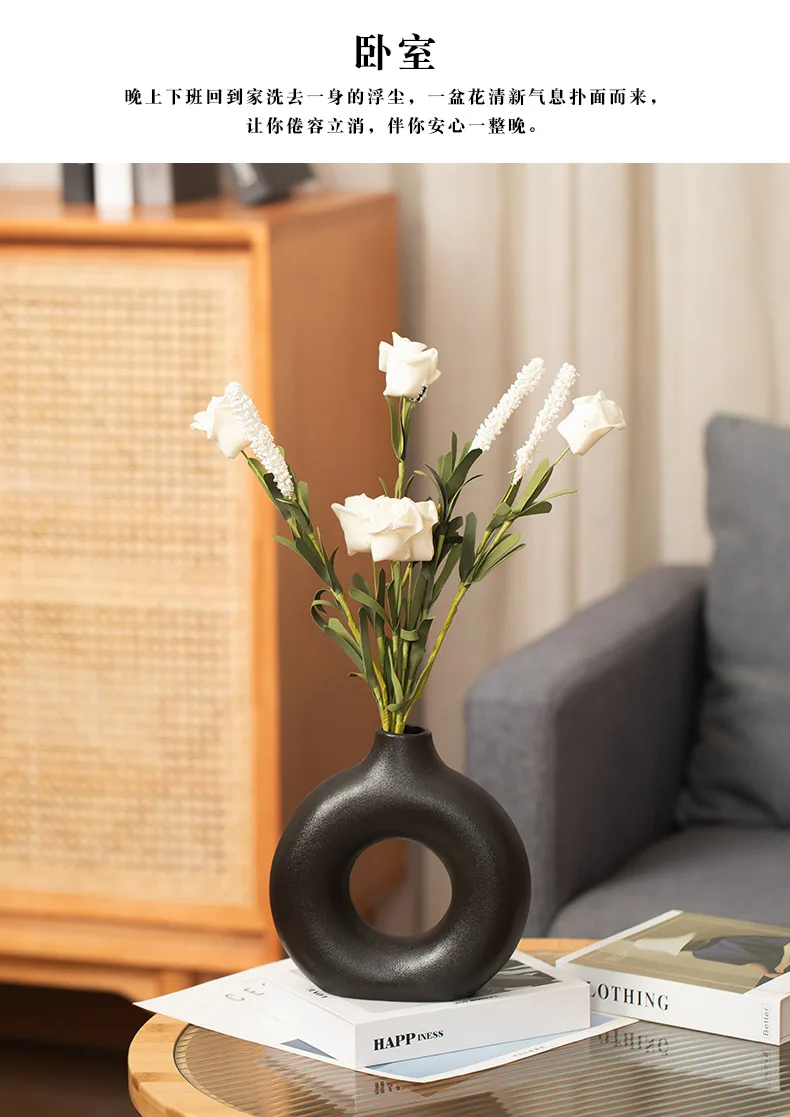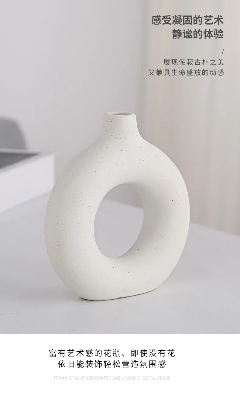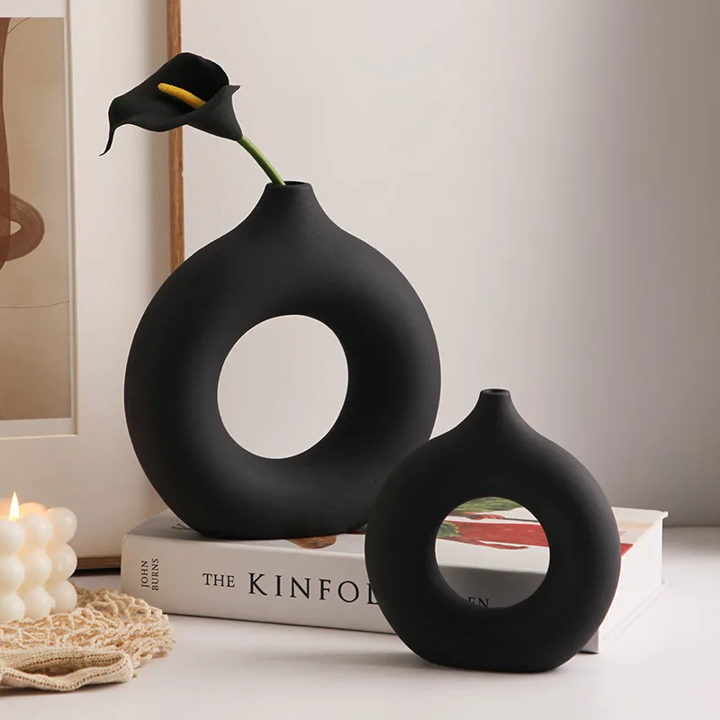 Nordic Vase Circular Hollow Ceramic Donuts Flower Pot Home Living Room Decoration Accessories Interior Office Desktop Decor Gift