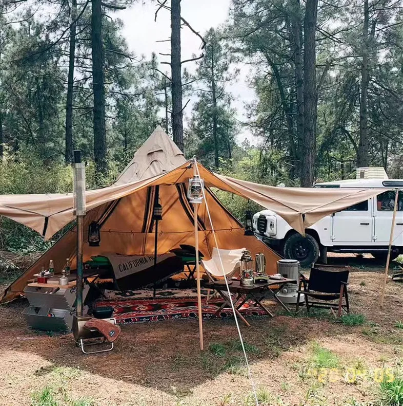 Outdoor Luxury Mongolian BBQ Pyramid Garden Camping Yurt Tent With Chimney Hole For Sale