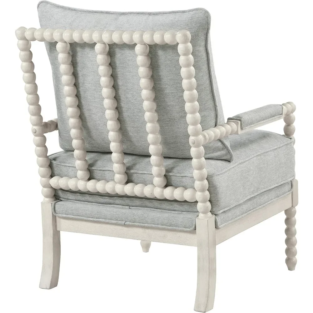 Spindle Accent Chair with Antique White Wood Frame, 26.5” W x 32.25” D x 37” H, Smoke Grey Fabric