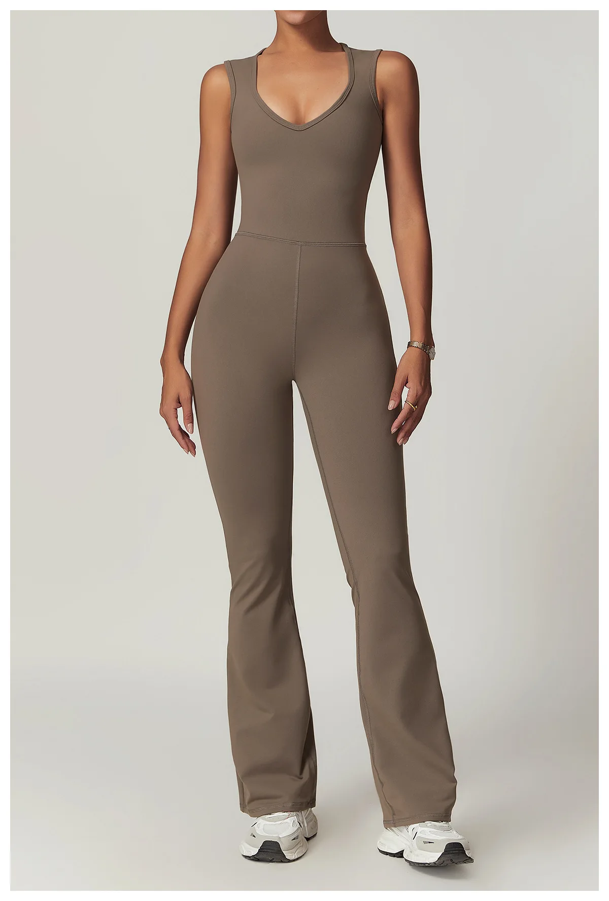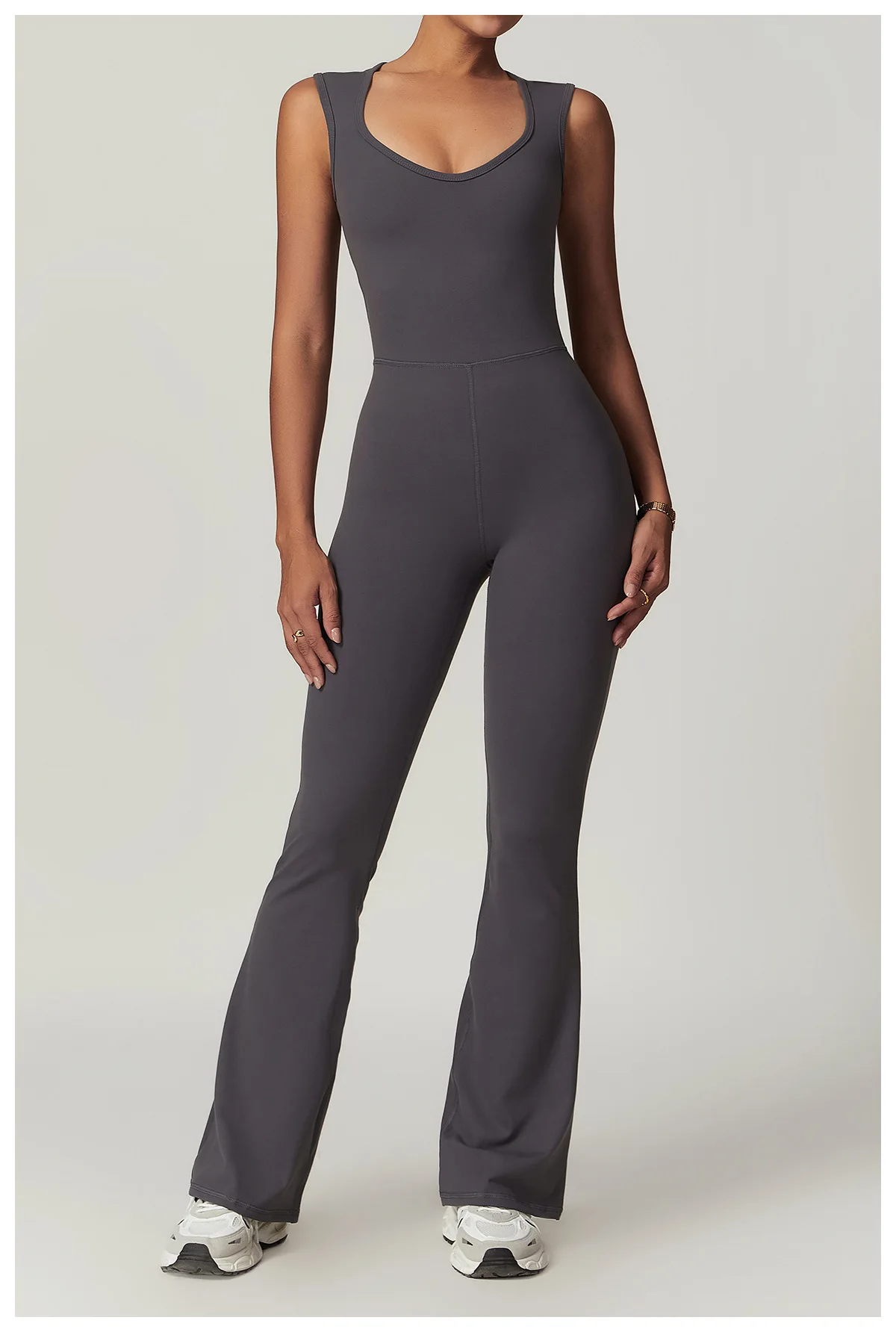 Sports Jumpsuit Yoga Clothing Tight Body Beauty Back Wide Strap One-piece Gym Clothing for Women Casual Micro Flare Fitness Pant