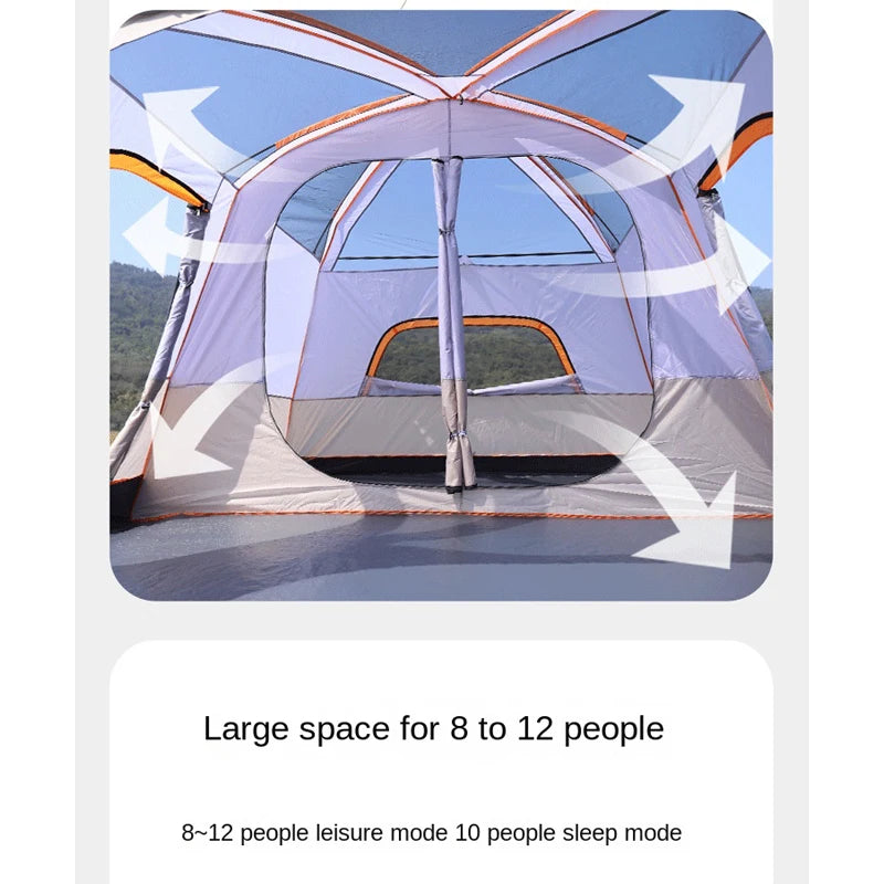 Tent outdoor two rooms and one hall thickened rainproof camping tent travel 4-12P double layer field luxury large camping tent
