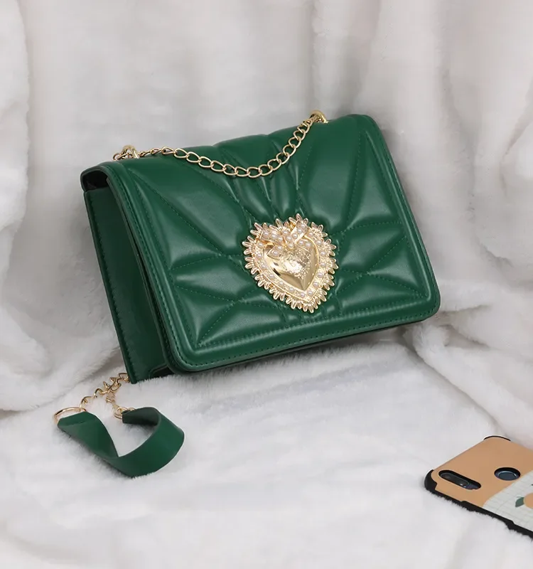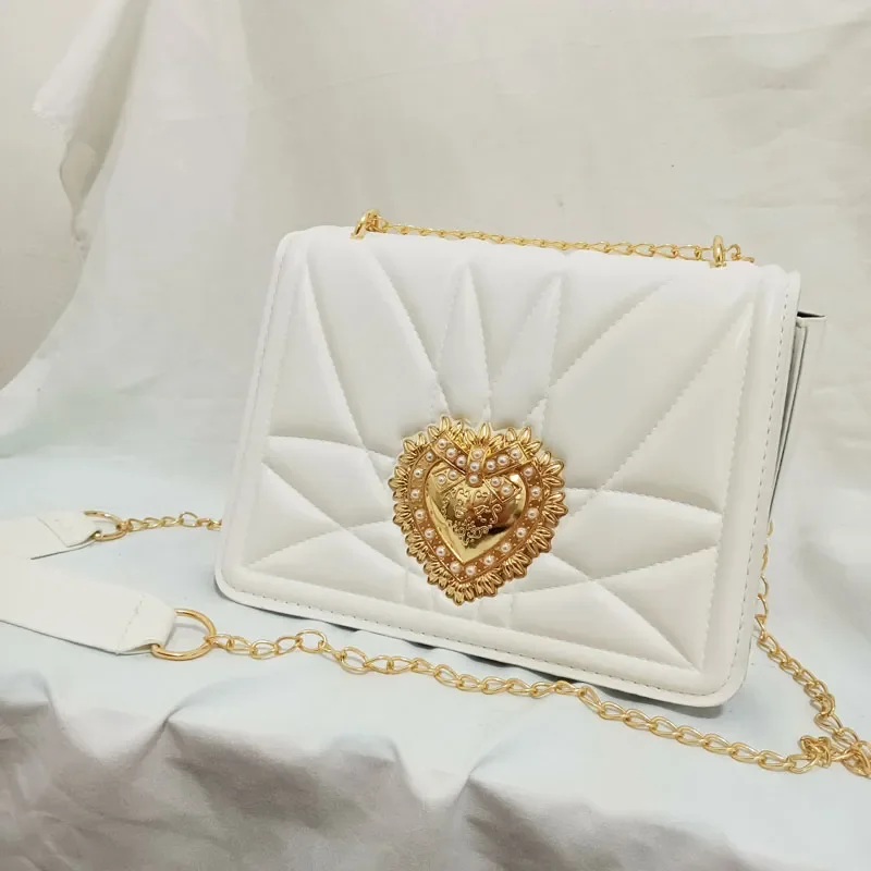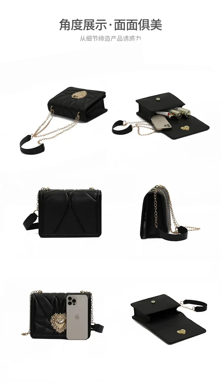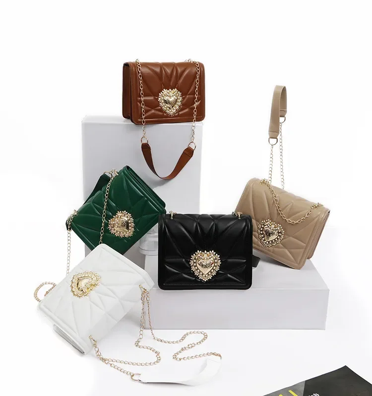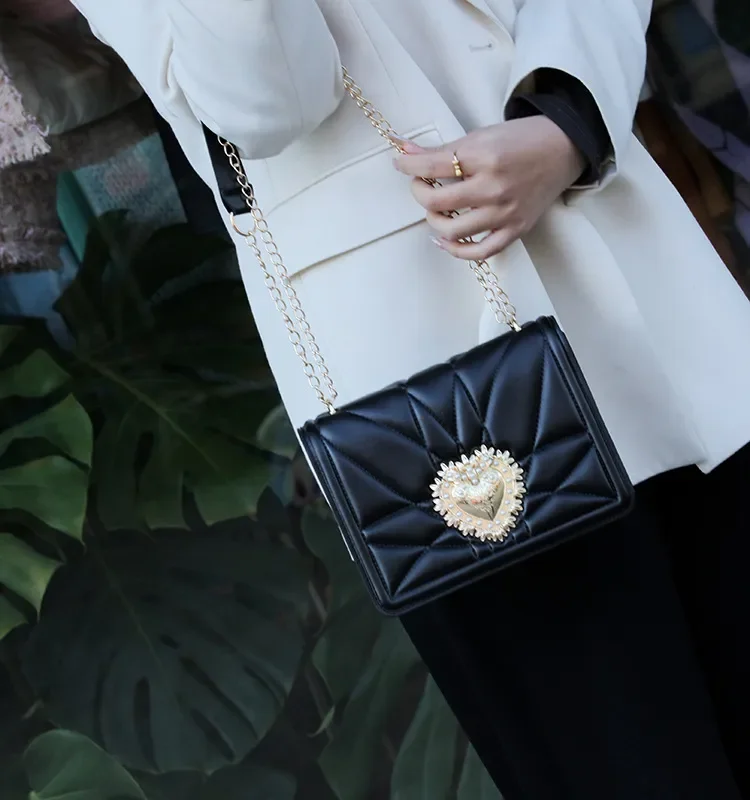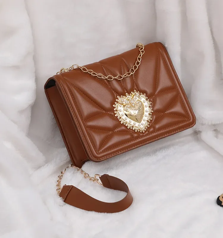 Western-style Women's Bag Quality Leather Shoulder Bags for Women Brand Messenge Retro Thread Heart Female Bag Chain Square Bags