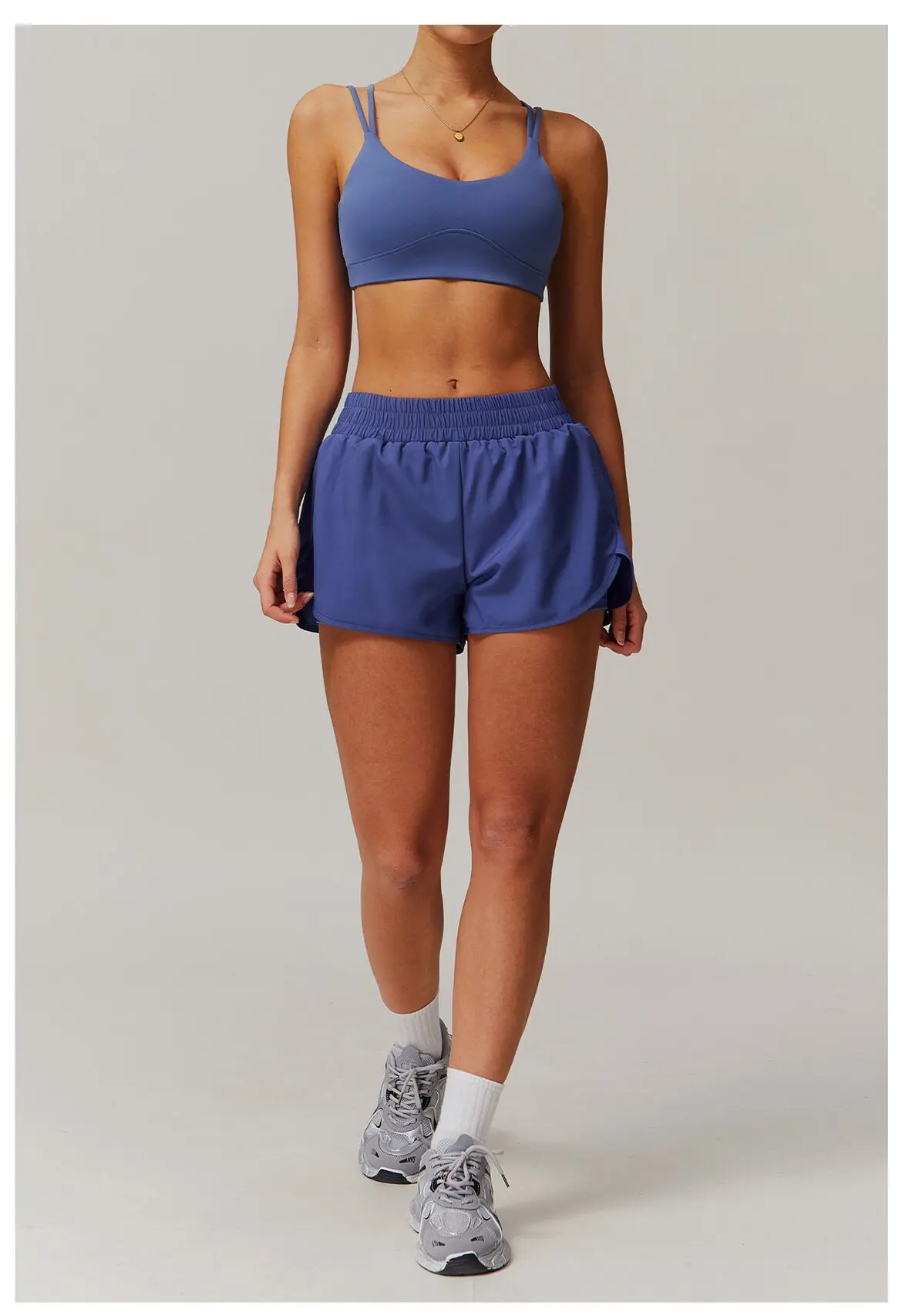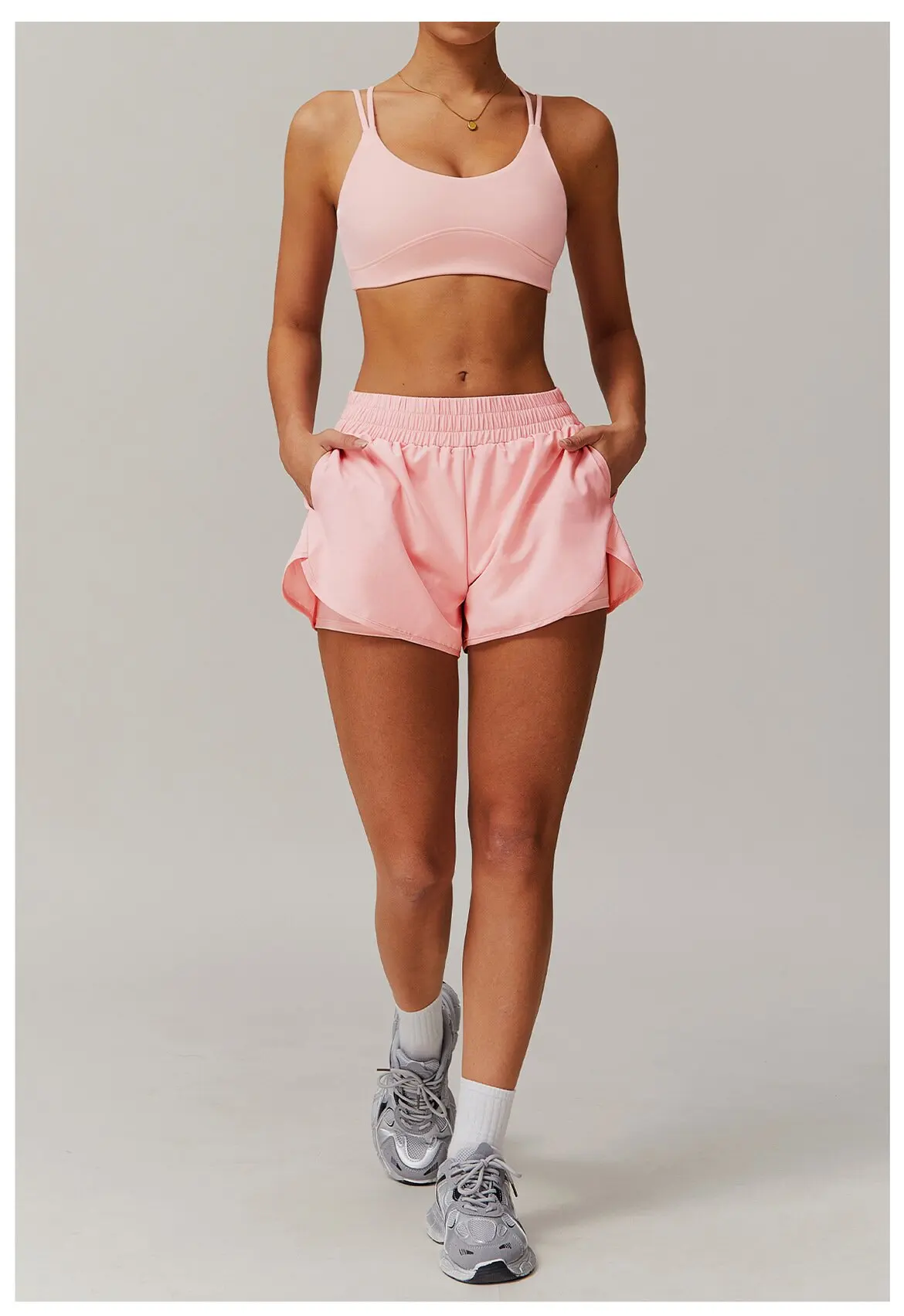 Women Athletic Shorts With Pocket Crisscross Bras Sets Sports Leggins Outdoor Yoga Pants Casual Training Workout Balls Suits