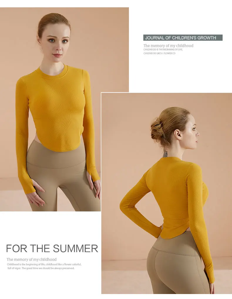 Women Autumn Yoga T-Shirt Female Fitness Crop Top Workout Gym Training Shirts Athletic Long Sleeved Yoga T-shirts Sportswear