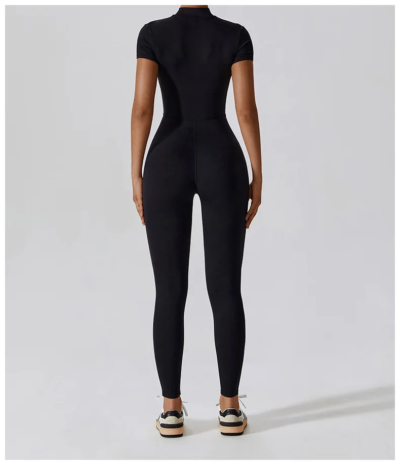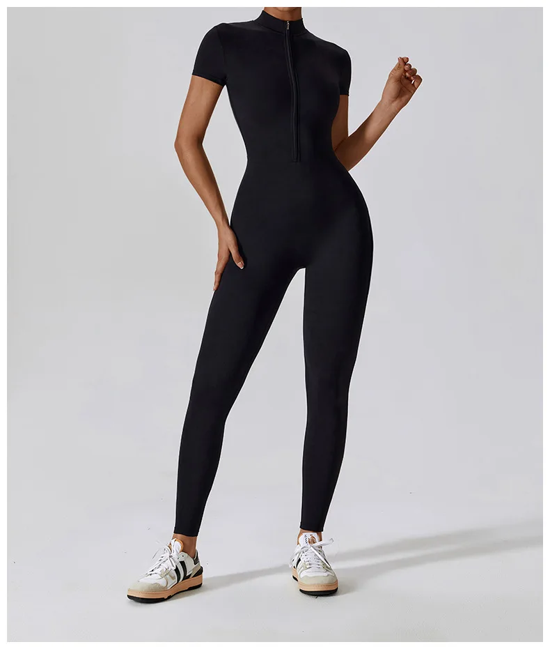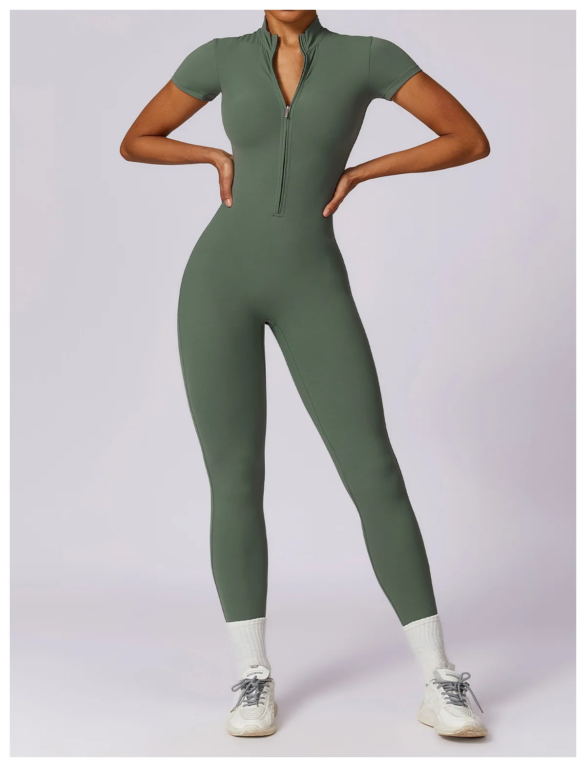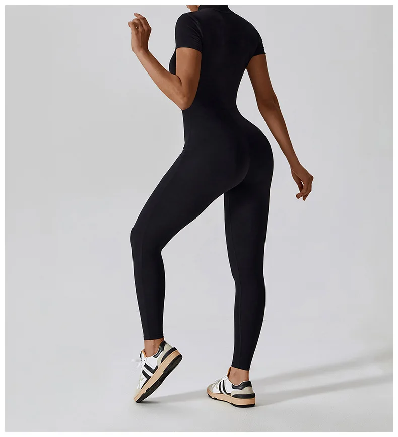 Women Sportswear Zipper Rompers Sports Jumpsuit Woman Fitness Overalls Workout Yoga Set Female Gym Short Sleeve One-Piece Suit