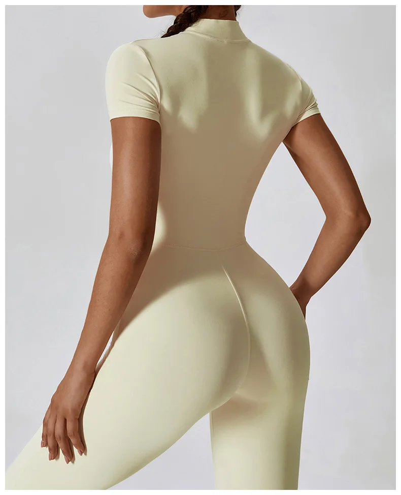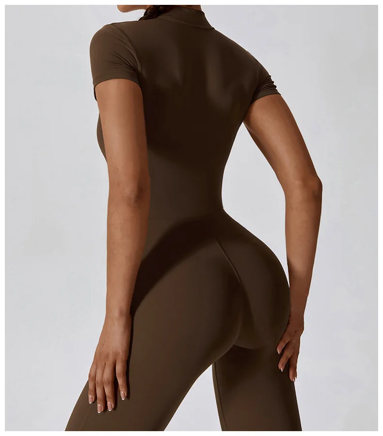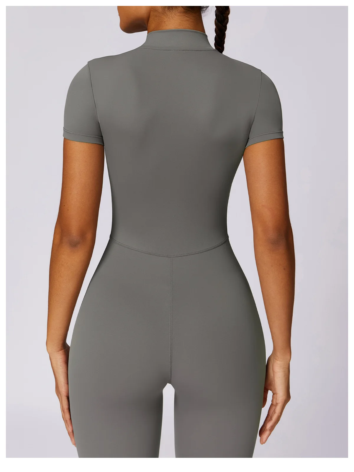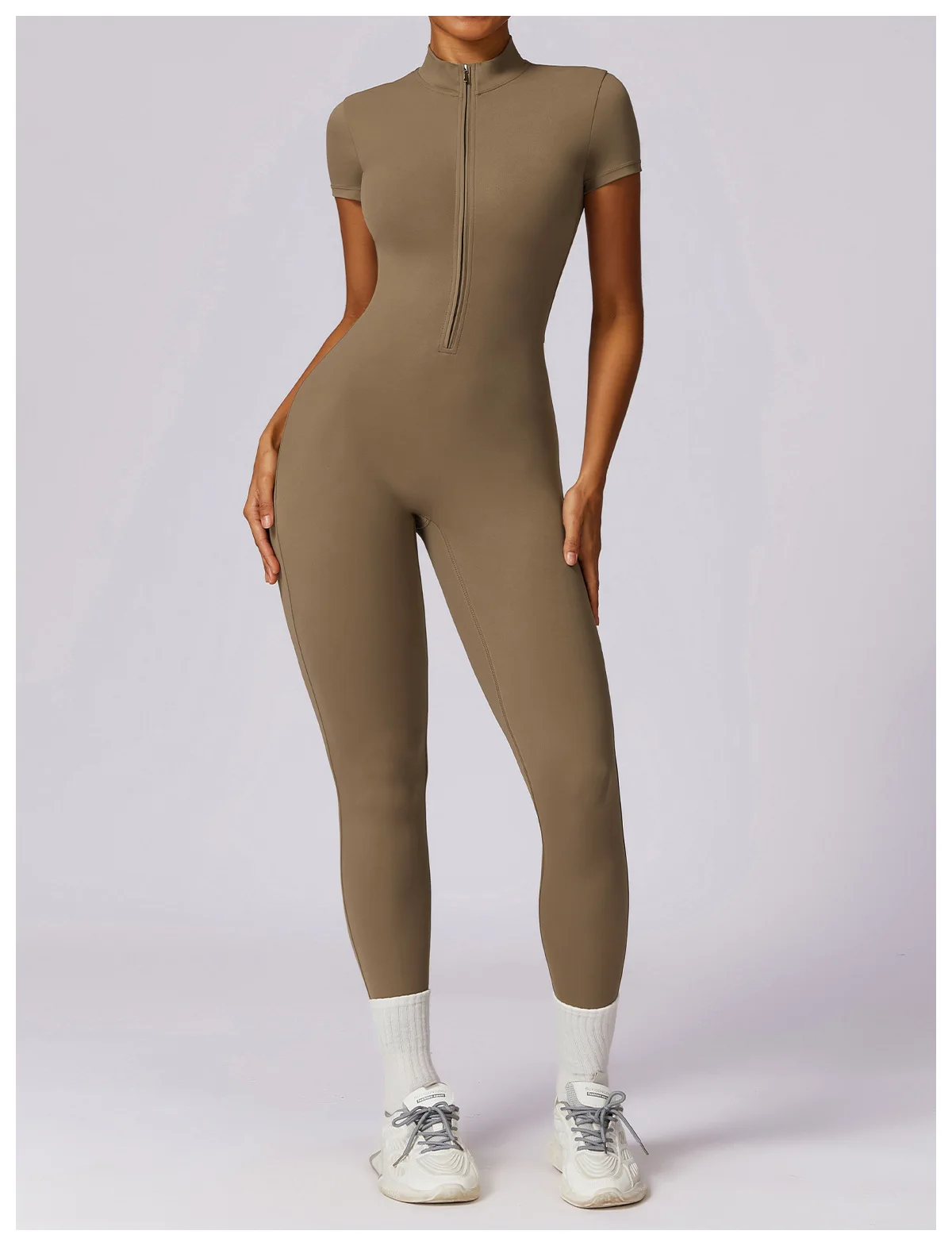 Women Sportswear Zipper Rompers Sports Jumpsuit Woman Fitness Overalls Workout Yoga Set Female Gym Short Sleeve One-Piece Suit
