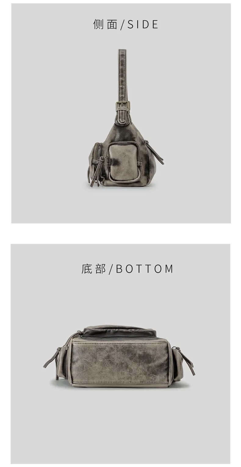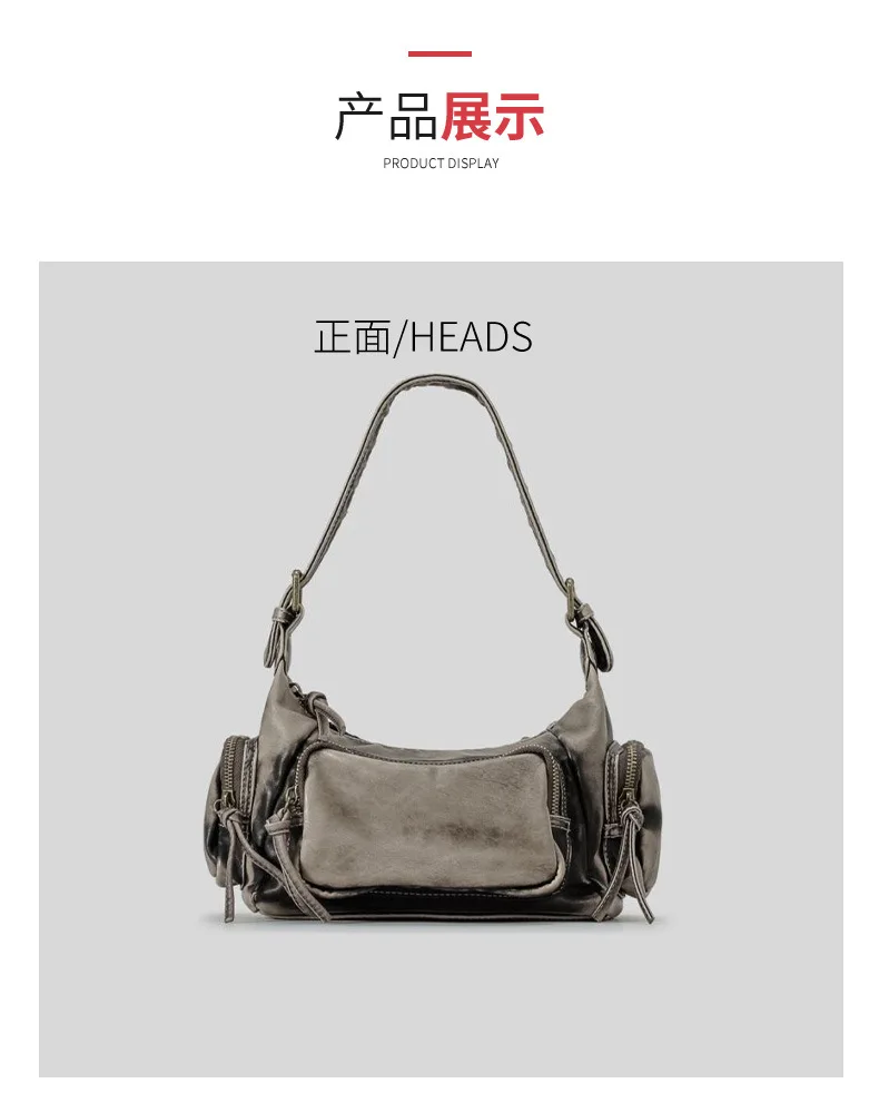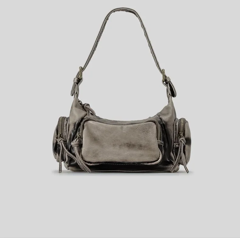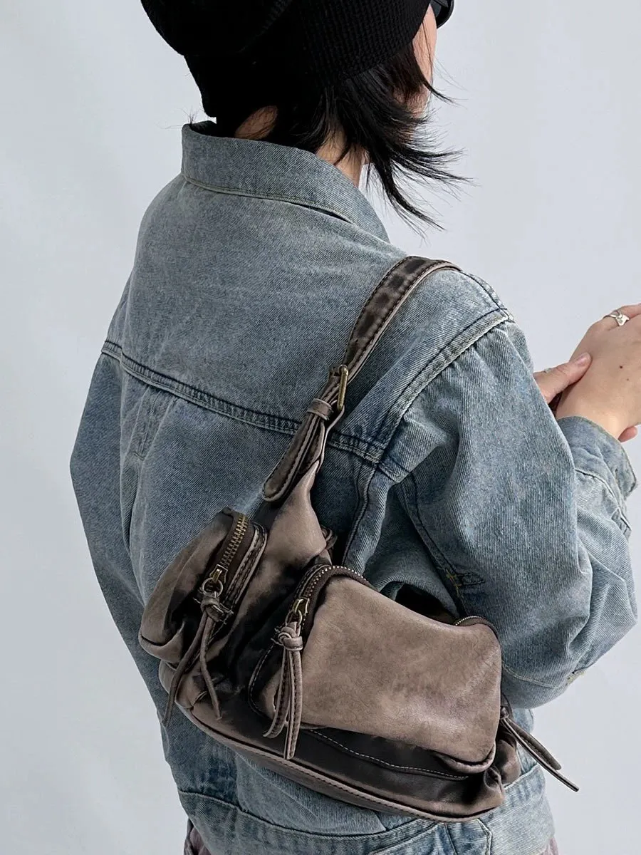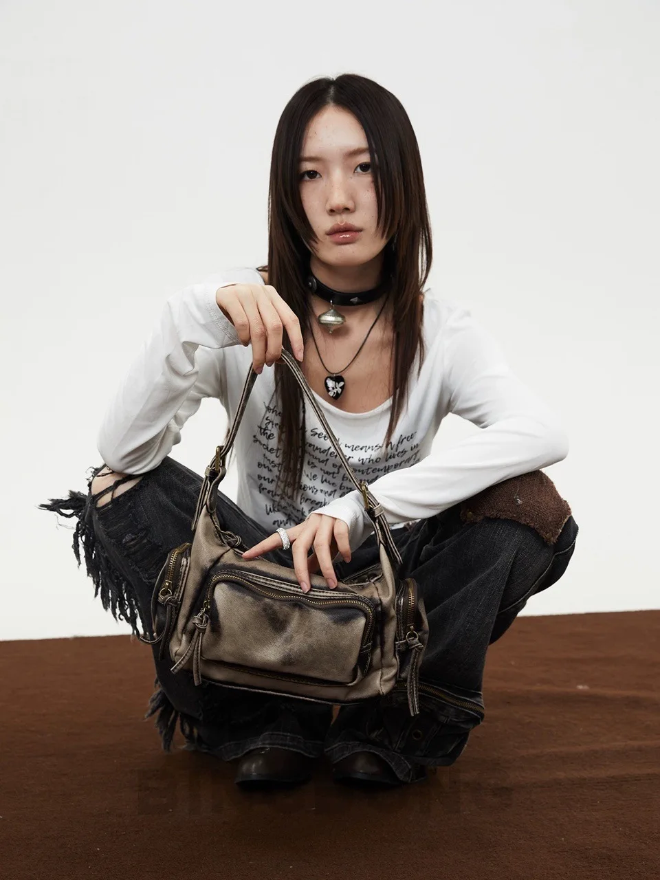 Women Vintage Denim Punk Shoulder Bag Design Y2k Black Grunge Handbag for Cool Girls Retro Lady Gothic Underarm Bags Motor Style