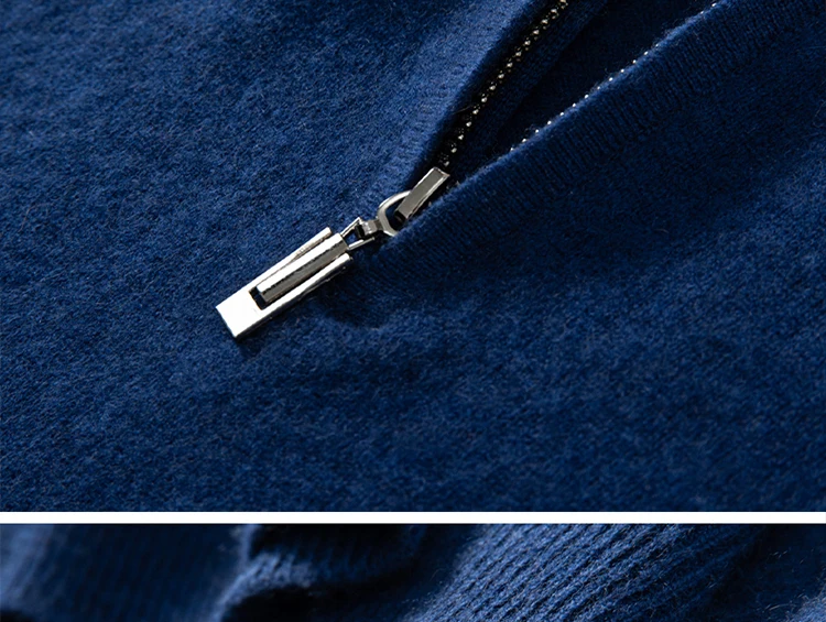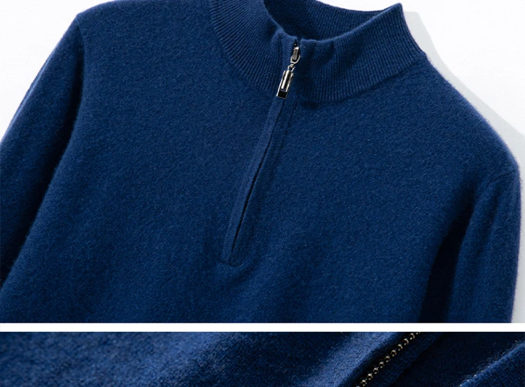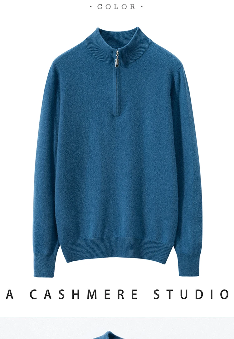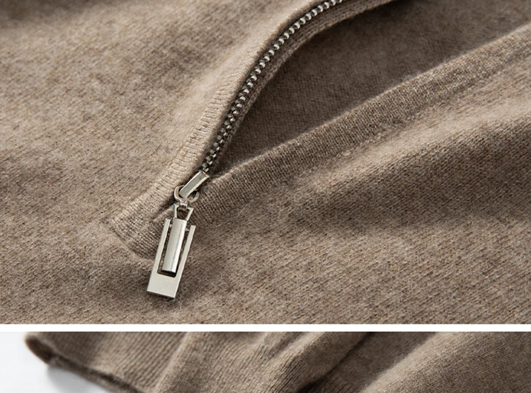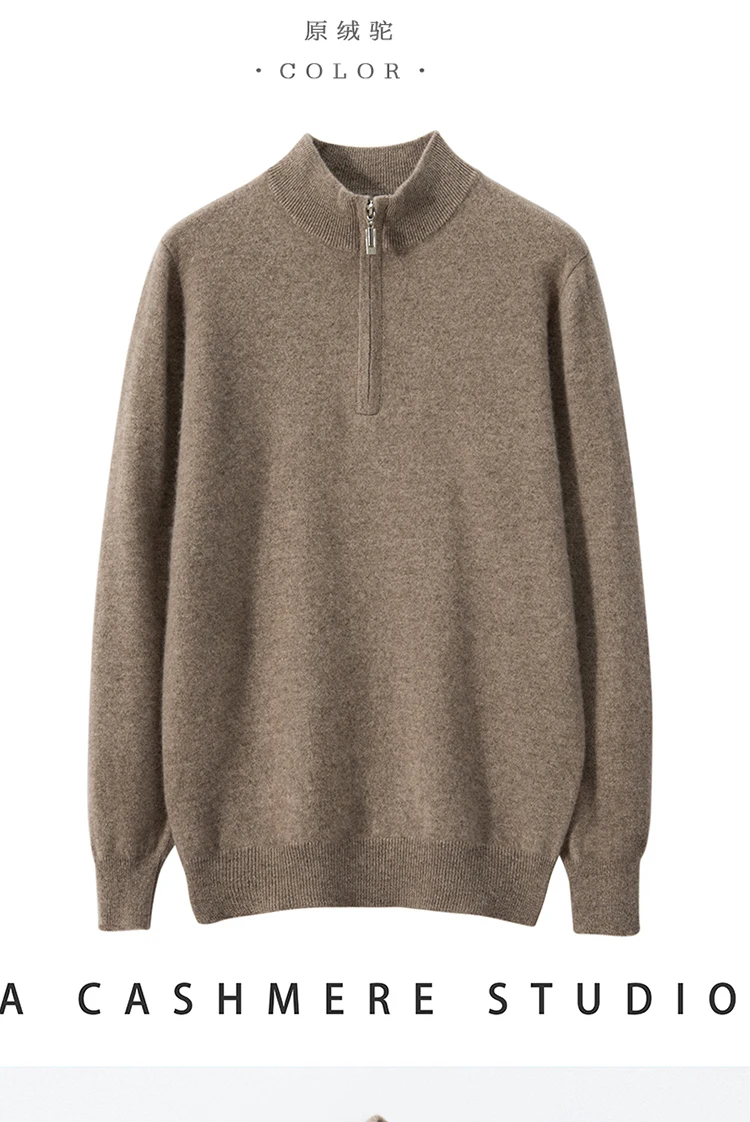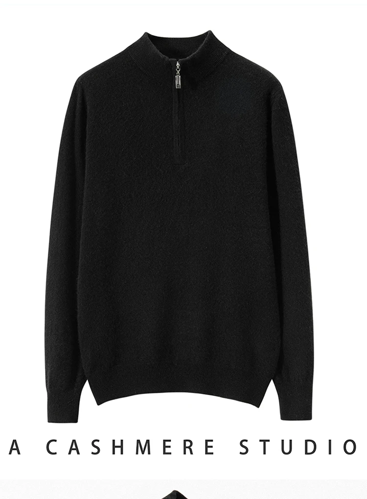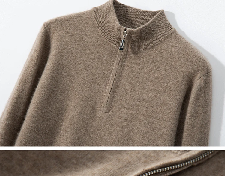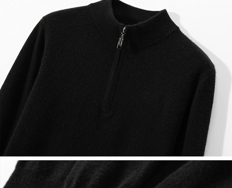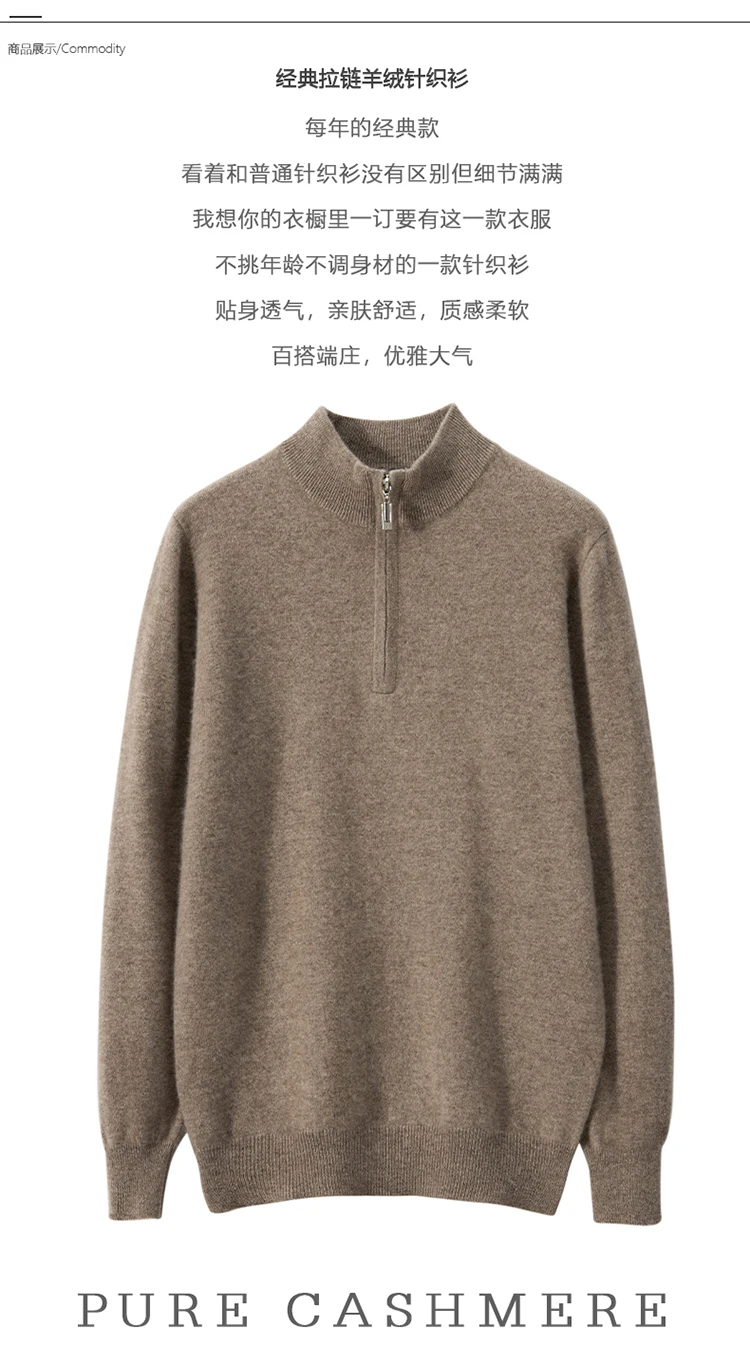 Zipper Neck Men Sweater 100% Goat Cashmere Knit Jumper Soft Warm Hot Sale Full Sleeve Pullover Solid Color Male Clothes WL01